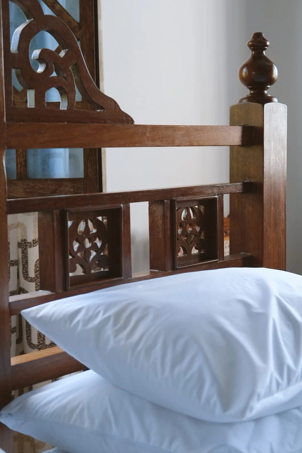 This third-floor, two-bedroom suite is beautifully decorated, with a captivating blend of modern and traditional aesthetics featuring Anna's signature minimal Swahili design. It boasts extraordinary views of the archipelago, Lamu Town, Shela, the dunes, and Manda, offering a near panoramic 360-degree vista. The living room is bright and airy, and the large kitchen is fully equipped with a dining table for four. The ensuite twin room and the master bedroom are ensuite and have AC for added comfort.